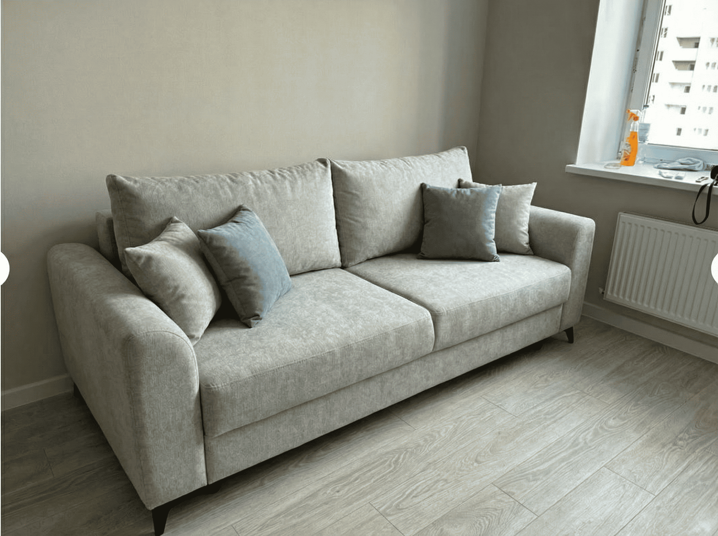 Купили диван в декабре — восторг! Идеально встал в гостиную, стильно смотрится. Очень удобный для сидения и супер для сна — ровное спальное место. Гости спрашивают, где взяли. Качество отличное, всё крепкое!